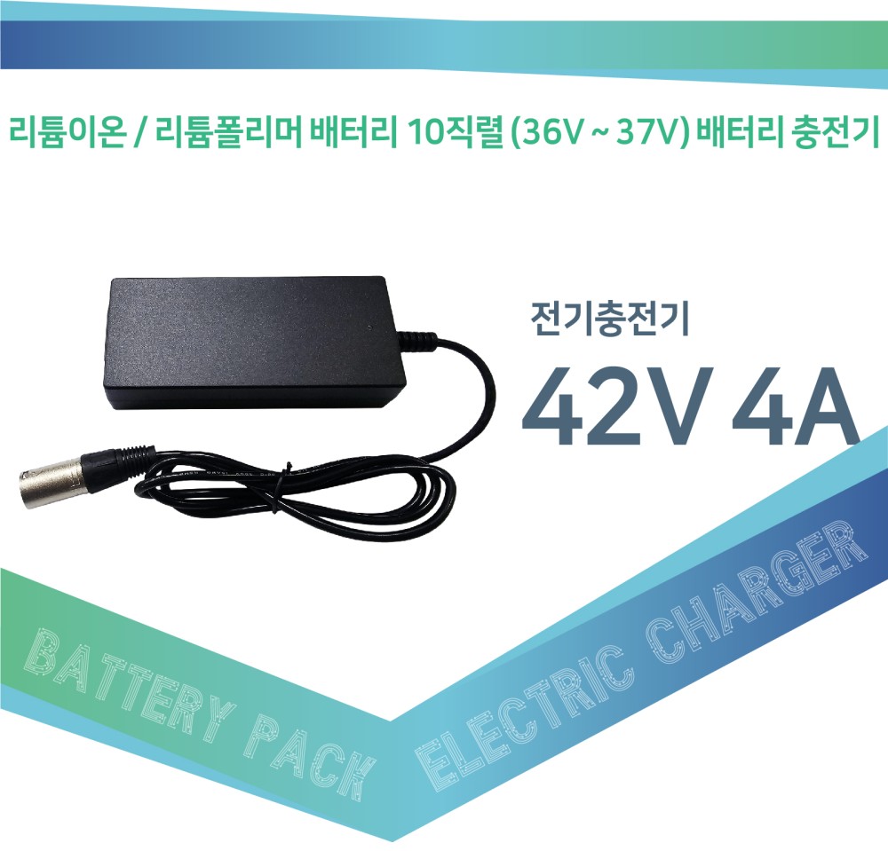 전기자전거, 전동퀵보드, 전동휠 등 리튬이온 10직렬 36V ~ 37V 배터리팩 충전용 42V 4A 전기충전기 출시